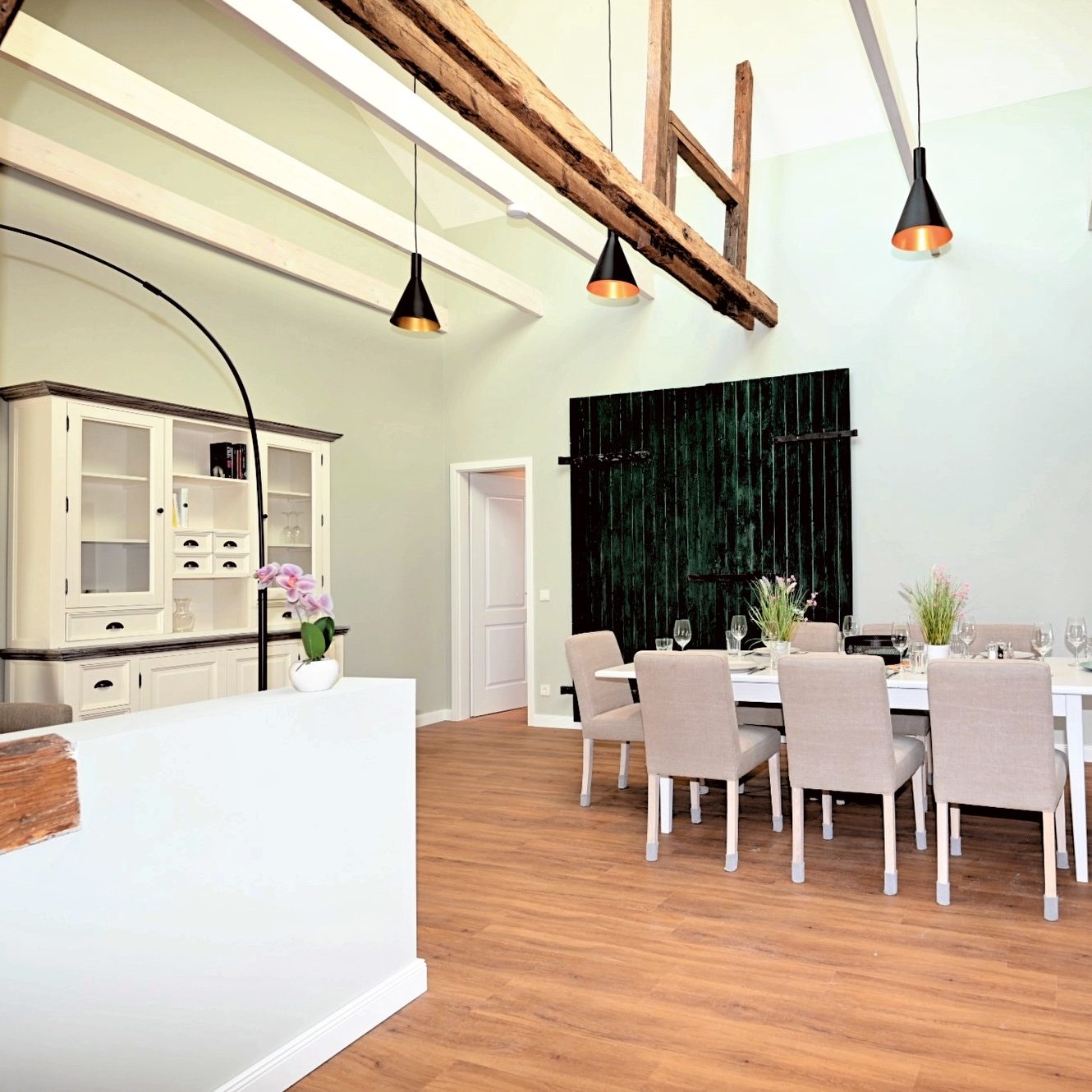 Zusätzlich gibt es einen großen Esstisch für bis zu 24 Personen, ideal, wenn mehrere Wohnungen gebucht werden und man gemeinsam essen oder Zeit verbringen möchte.