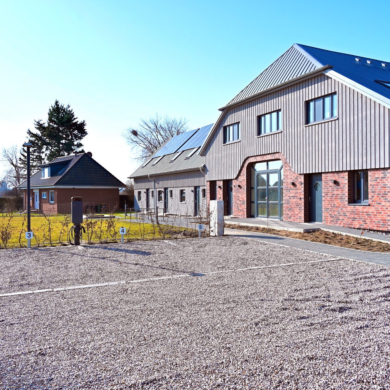 Auf dem Grundstück stehen fünf Ladestationen für Elektroautos zur Verfügung.