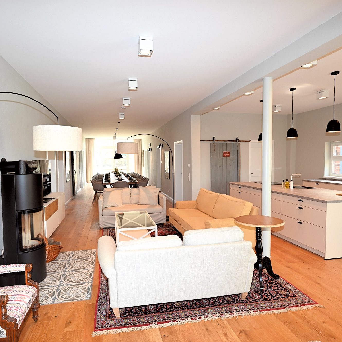 Zusätzlich gibt es einen großen Esstisch für bis zu 24 Personen, ideal, wenn mehrere Wohnungen gebucht werden und man gemeinsam essen oder Zeit verbringen möchte.