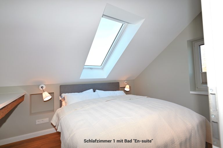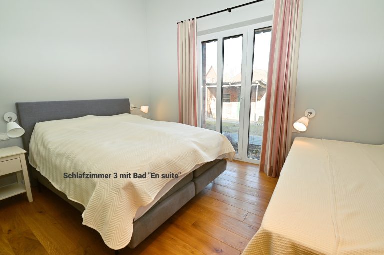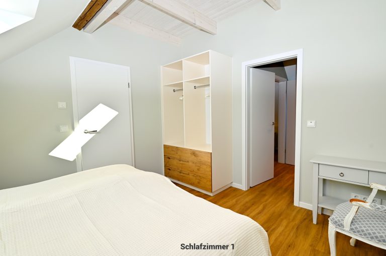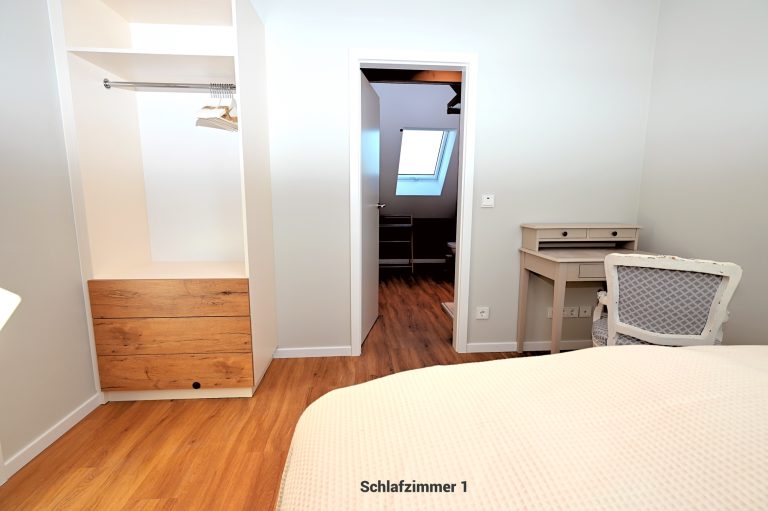 Das Appartement 4 befindet sich im 1. Stock und verfügt über insgesamt 5 Zimmer mit 4 Schlafzimmern, 3 Badezimmern und Schlafmöglichkeiten für bis zu 8 Personen. Damit eignet sie sich besonders gut für Familien oder gemeinsam reisende Erwachsene.