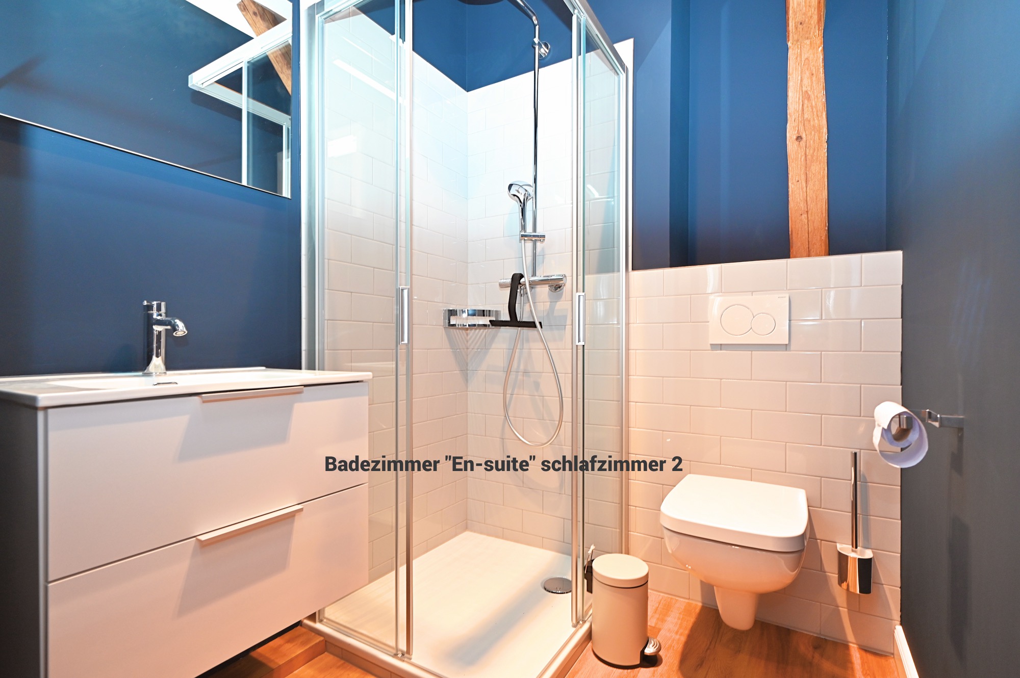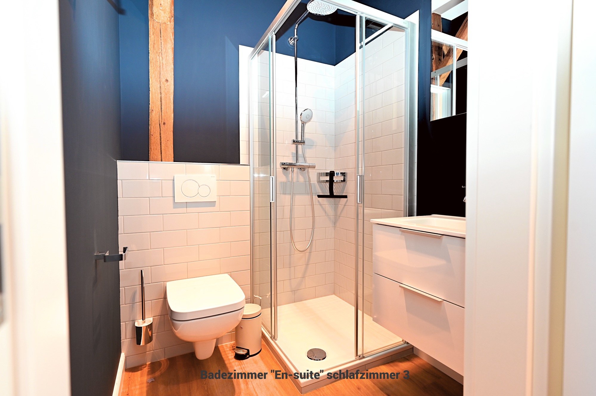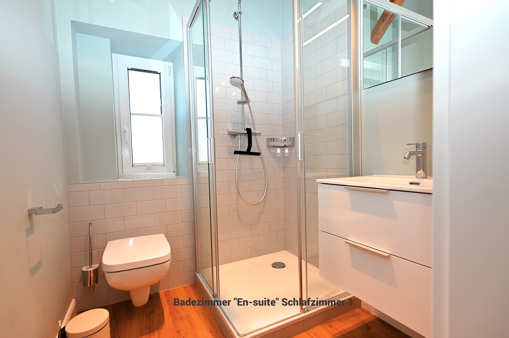 Das Appartement 4 befindet sich im 1. Stock und verfügt über insgesamt 5 Zimmer mit 4 Schlafzimmern, 3 Badezimmern und Schlafmöglichkeiten für bis zu 8 Personen. Damit eignet sie sich besonders gut für Familien oder gemeinsam reisende Erwachsene.