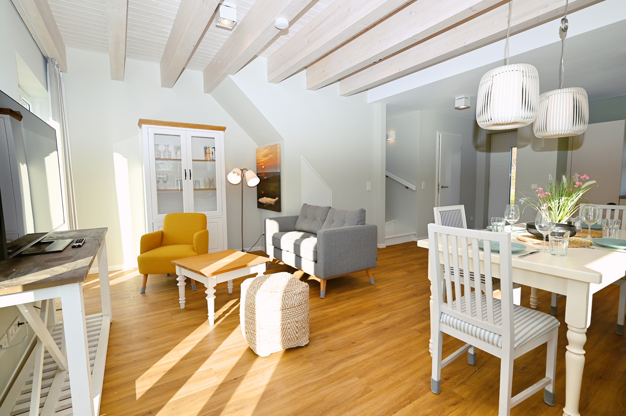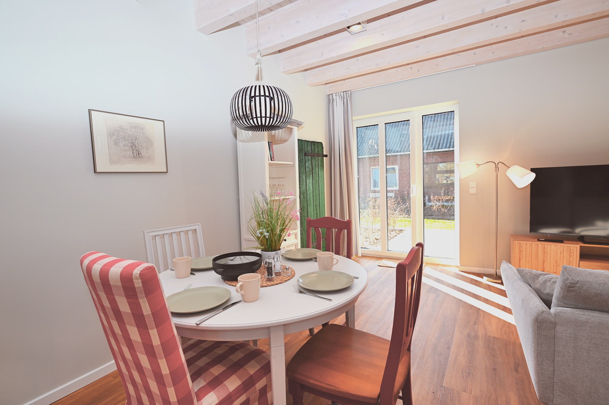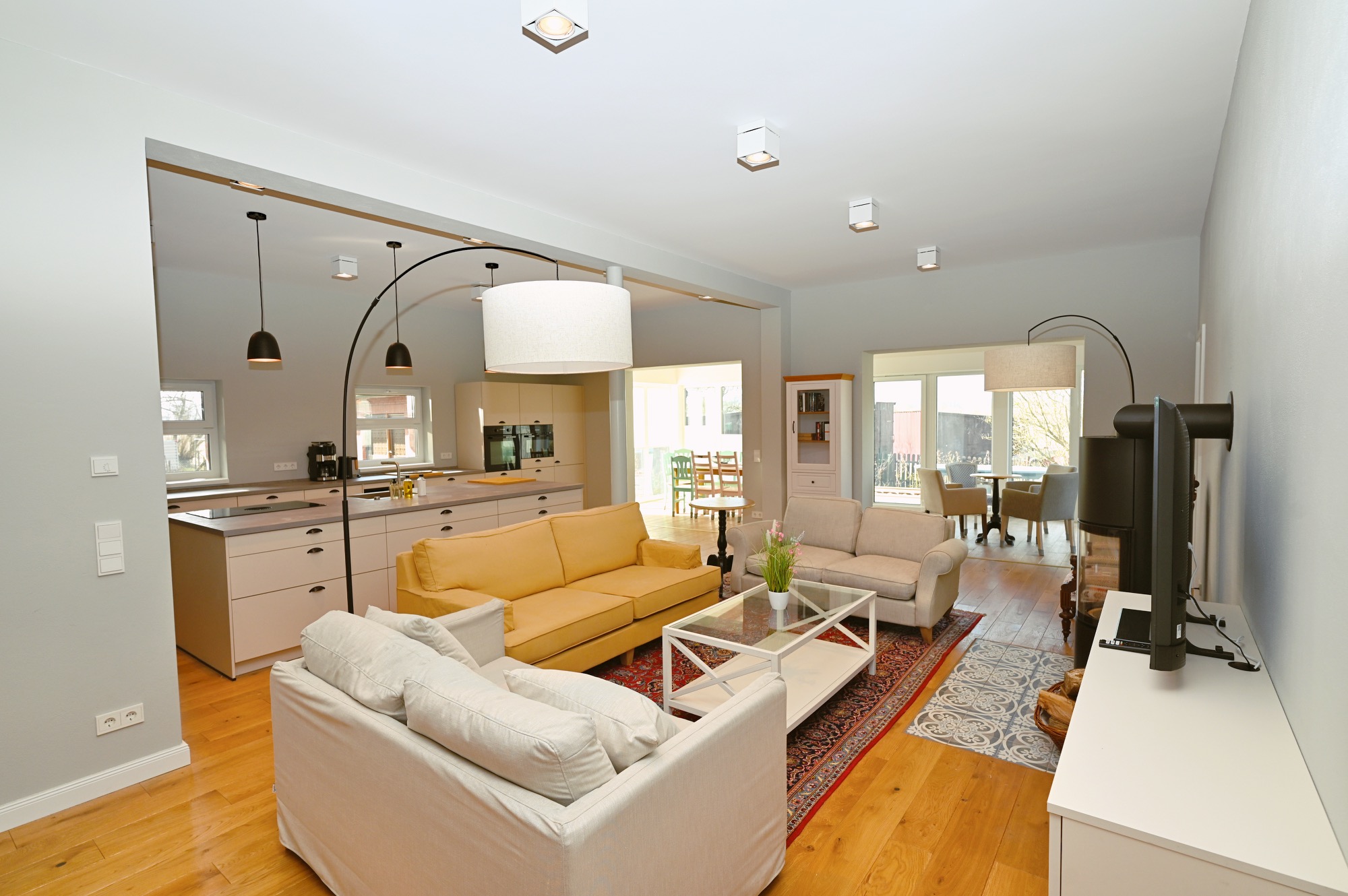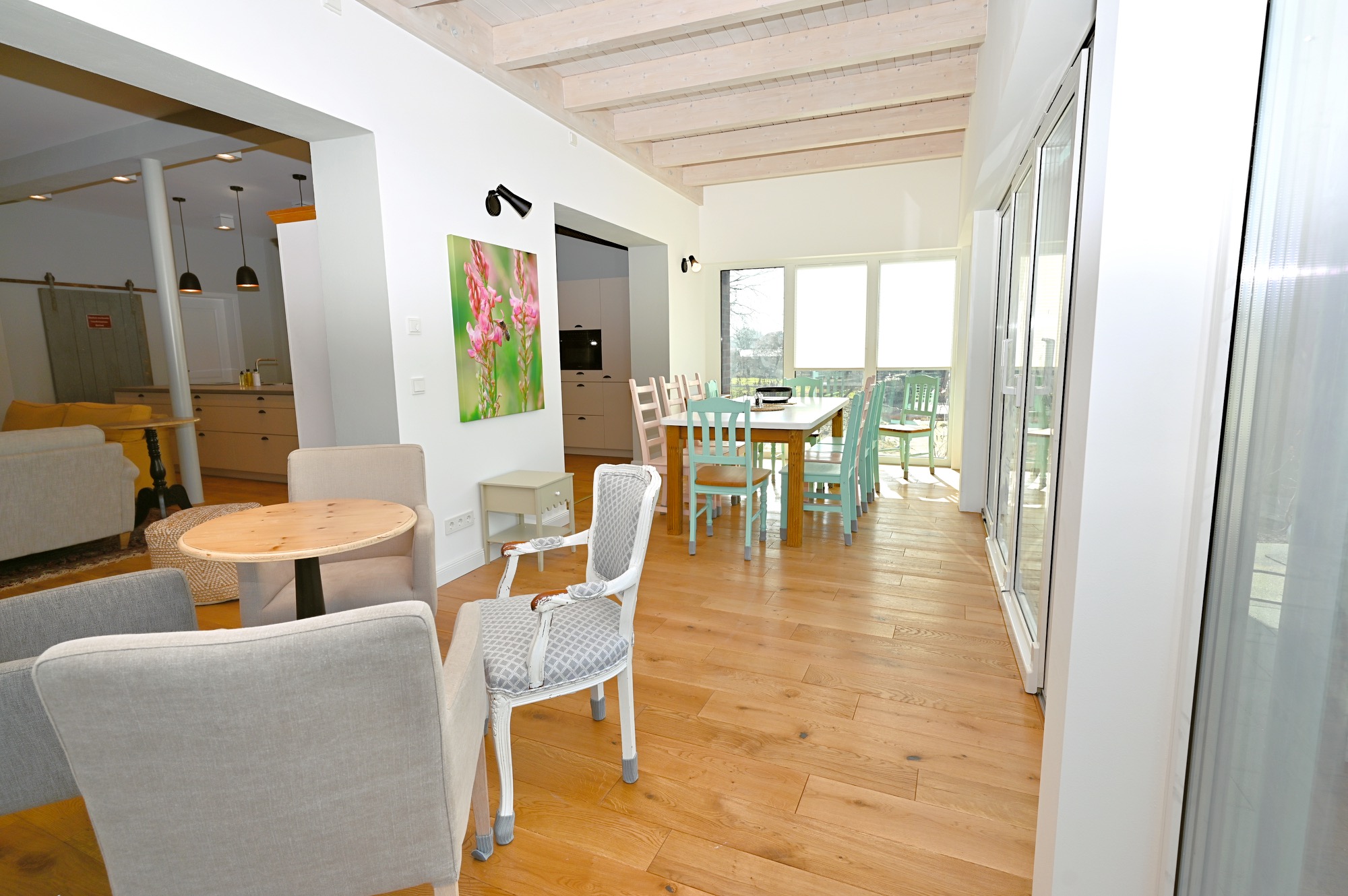 Zusätzlich gibt es einen großen Esstisch an den bis zu 24 Personen passen.